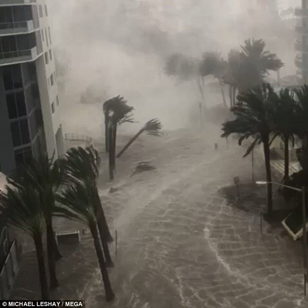 Đoạn video do phóng viên địa phương Josh Benson đăng tải lên mạng xã hội cùng lời chú thích "Những người chủ ở Miami đứng nhìn cửa hàng bị nước bao vây. Thật kinh khủng và tồi tệ. #HurricaneIrma #Irma.".