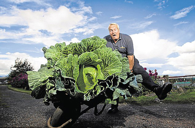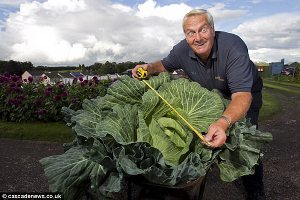 Vốn là người mát tay trong nghề trồng trọt nên ông Bryan Calder, hưu trí 72 tuổi sống tại thị trấn Forfar, Scotland đã tẩm bổ cho cây bắp cải trong vườn nhà mình phát triển đạt kích thước kỷ lục là 1,5m. Theo ước tính, cây bắp cải khổng lồ này có thể đủ để nấu khoảng 300 bát súp.