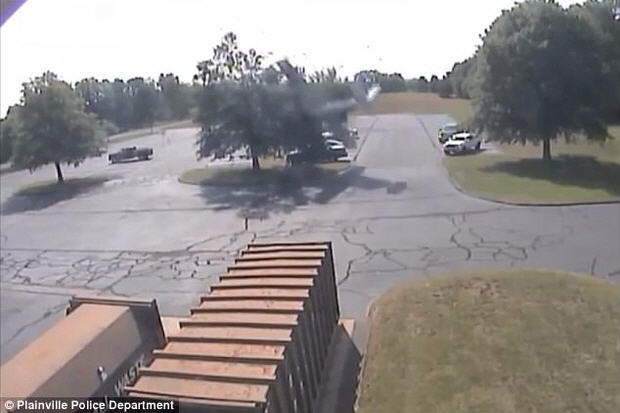 Chiếc máy bay gặp sự cố, đâm sầm vào một cái cây rồi rơi xuống đất.