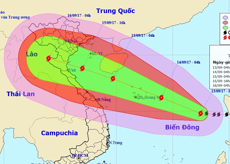 HÀ TĨNH - Cơn bão mang tên quốc tế Doksuri, hay bão số 10 tại VN, được dự đoán là nguy hiểm và mạnh nhất trong ba năm qua, sẽ đánh vào khu vực bắc trung bộ vào chiều tối thứ Sáu rạng sáng thứ Bảy sắp tới. Chiều thứ Tư, trung tâm khí tượng tại VN cho biết tâm bão Doksuri nằm cách quần đảo Hoàng Sa khoảng 790 km về phía Đông Đông Nam.