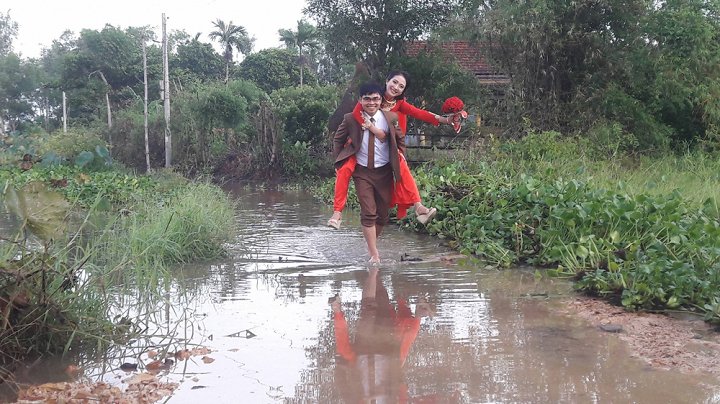 Có lẽ đây là một đám cưới nhớ đời cho cả hai họ. Cơn bão số 10 đang hoành hành dữ dội, vậy mà nhà trai vẫn đội mưa, lội nước đến rước dâu. Lấy được vợ đâu có phải dễ dàng???