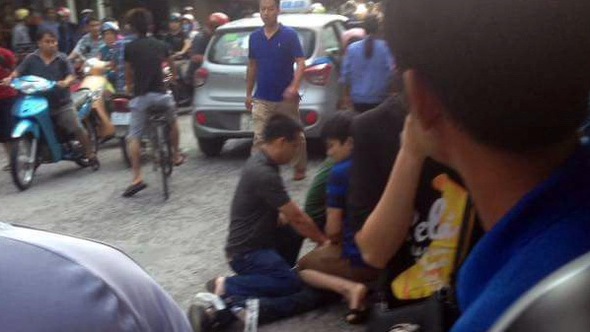 Khoảng 17h20 ngày 16/9, chị Hạnh đang đứng bán hàng thì thấy phía ngoài đường ngay trước cửa hàng, một người đàn ông điều khiển xe máy bất ngờ chặn đầu một chiếc taxi.