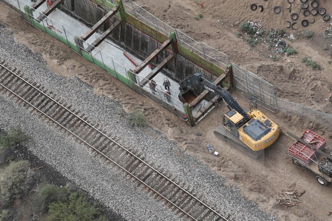 Công trình xây dựng bức tường biên giới Mexico-Mỹ ngày.