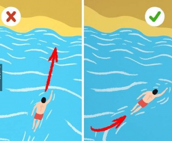 Vì vậy, lời khuyên ở đây là bạn hãy bơi theo hướng chéo, check góc khoảng 45 �, cho dù quang đường xa hơn một chút nhưng bạn có thể dễ dàng đạt được mục đích hơn, không nguy hiểm đến tính mạng.