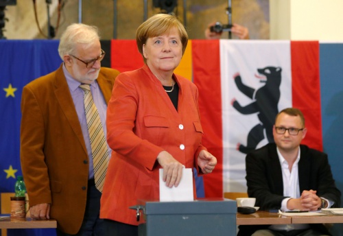 Bà Merkel đi bỏ phiếu tại Berlin. Ảnh: Reuters.