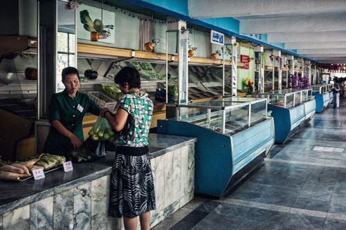 Một phụ nữ mua hàng trong quầy thực phẩm ở Triều Tiên. Ảnh: Michal Huniewicz.