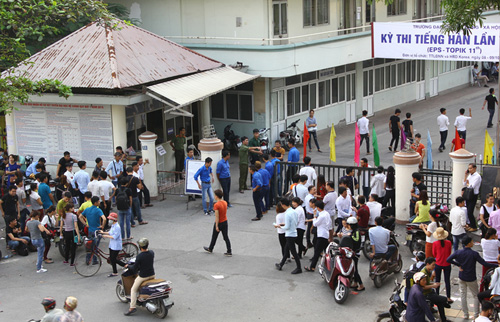 Hàng nghìn thí sinh có mặt tại Đại học Lao động Xã hội (Hà Nội) để dự kỳ thi tiếng Hàn lần thứ 11 do Trung tâm lao động ngoài nước (Bộ Lao động, Thương binh và Xã hội) cùng Cơ quan phát triển nguồn lực Hàn Quốc tổ chức vào ngày 9/10/2016.