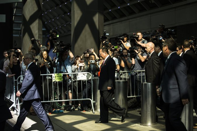 Ngoại trưởng Triều Tiên Ri Yong-ho trong vòng vây của báo giới tại trụ sở Liên Hợp Quốc ngày 25/9 (Ảnh: Reuters)