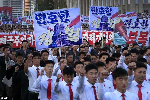 Người Triều Tiên tuần hành chống Mỹ tại thủ đô Bình Nhưỡng ngày 23/9 (Ảnh: AP)