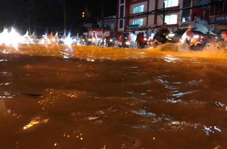 Tối 28/9, nhiều khu vực ở phía Đông TP.HCM có mưa rất lớn. Cơn mưa như trút nước khiến hàng loạt tuyến đường trên địa bàn các quận 2, 9, Thủ Đức...ngập sâu trong biển nước mênh mông.