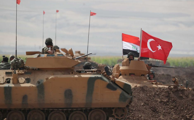 Lực lượng Iraq và Thổ Nhĩ Kỳ tập trận chung ngày 26/9 trên lãnh thổ Thổ Nhĩ Kỳ, gần biên giới giáp khu tự trị của người Kurd ở Iraq (Ảnh: EPA)