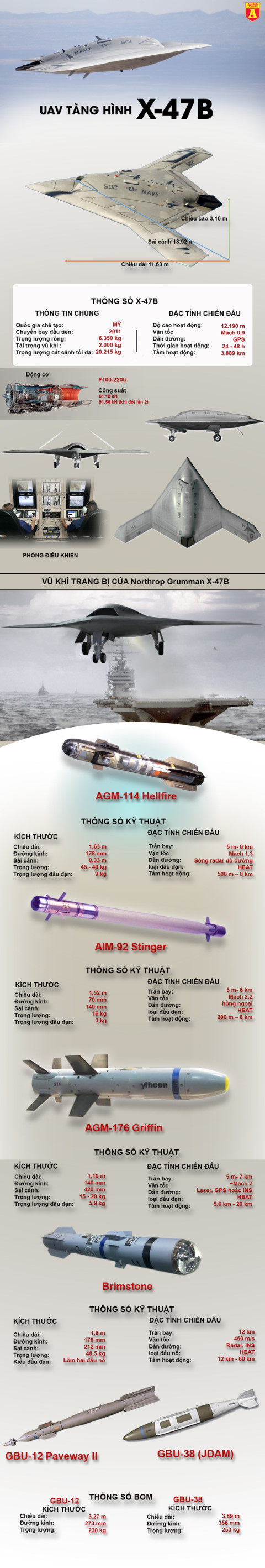 Máy bay không người lái X-47B thuộc loại UAV thông minh bán tự động. Máy bay được trang bị hệ thống trí tuệ nhân tạo có khả năng tự động điều khiển chuyến bay phù hợp với môi trường xung quanh.