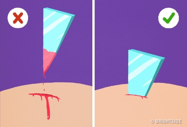 Nếu bạn bị vết cắt sâu. Nhiều người nghĩ khi bị vật gì đâm, cần phải rút ngay dị vật ra rồi vệ sinh vết thương. Việc này đúng. Nhưng khi bị vết thương sâu, bạn không được làm như vậy. Nếu rút vật nhọn ra, vết thương sẽ bắt đầu chảy máu. Do đó, tốt hơn hết bạn không nên động vào vị trí bị thương và chờ cho tới khi xe cứu thương tới.