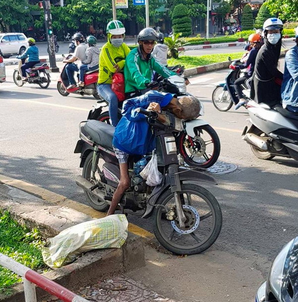 Mới đây, cộng đồng mạng tiếp tục chia sẻ hình ảnh trên đoạn Ngã tư Trường Sa – Nguyễn Công Hoan ở thành phố Hồ Chí Minh về hình ảnh ông lão gầy gò nằm gục trên chiếc xe máy. Ông lão đã làm không ít người phải rơi nước mắt vì thân hình gầy gò, đặc biệt khi nhìn xuống đôi chân chỉ có da bọc xương. Chiếc áo gió màu xanh cùng chiếc quần đùi đã cũ, mái tóc bạc vì lam lũ, sương gió của ông khiến người thương cảm.
