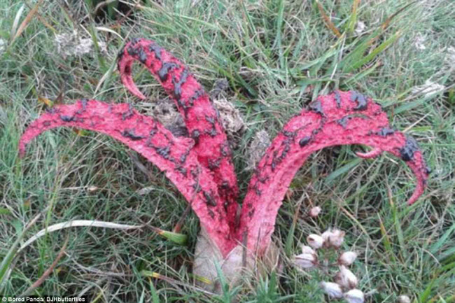Loài nấm ngón tay trông kinh dị như những chiếc móng vuốt máu me chui lên từ mặt đất.