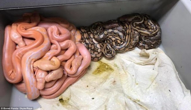 Trăn mới nở tự phân chia nhóm theo màu của chúng.