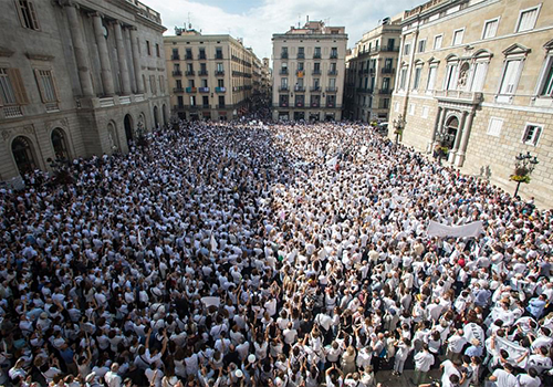 Trước tòa thị chính Barcelona, nhiều người tham gia không chỉ mặc áo màu trắng mà còn sơn trắng lòng bàn tay và thả bóng bay màu trắng lên trời. Họ chỉ trích các chính trị gia Tây Ban Nha thất bại trong việc giải quyết cuộc khủng hoảng hiến pháp được coi nghiêm trọng nhất trong nhiều thập kỷ qua.