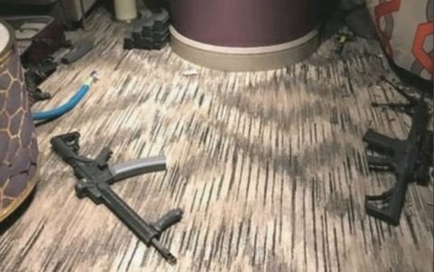Cảnh tượng bên trong căn phòng Stephen Paddock thuê ở tầng 32 của khách sạn Mandalay Bay Ảnh: QT.COM.AU