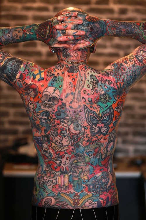 Các hình xăm rải khắp cơ thể anh Paul, chiếm 96% cơ thể.