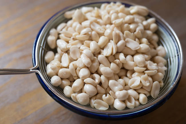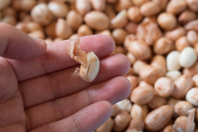 Bước 1: Ngâm lạc vào nước qua đêm hoặc cho đến khi bạn tách bỏ được vảy của hạt lạc.