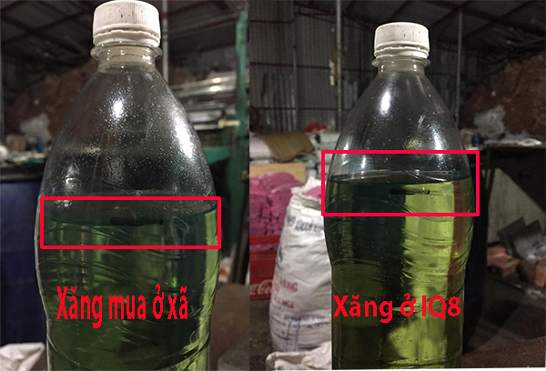 Xăng Q8 màu hơi ánh vàng còn xã em màu xanh hơn nhé. Cả 2 cây xăng em đều mua 1 chai, 25kg và xăng a92, mọi người cho ý kiến về sự chênh lệch?”