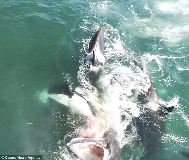Trong video, người xem có thể nhìn thấy cá voi Minke kêu lên trong đau đớn khi bị đàn cá voi sát thủ cắn ngập răng.