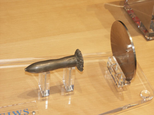 Đĩa kim loại của EFP trước (phải) và sau khi được kích nổ. Ảnh: Egloos.