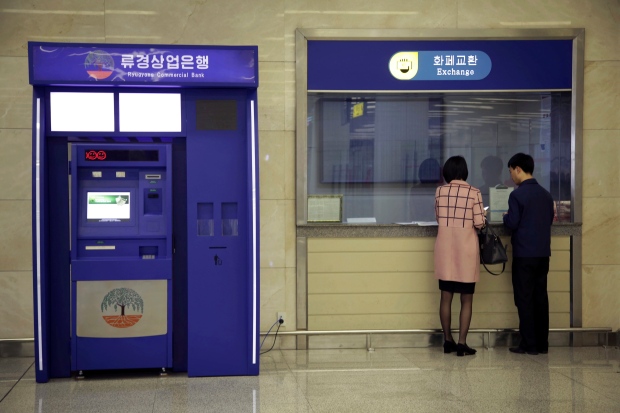 Cây rút tiền tự động tại ngân hàng Ryugyong, Triều Tiên. (Ảnh: The Denver Post)