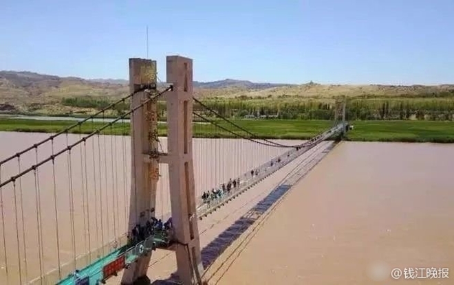 Cây cầu kính đặc biệt băng qua sông Hoàng Hà này được xây dựng tại khu thắng cảnh Sa Pha Đầu, ở thị trấn Trung Vệ, Khu tự trị dân tộc Hồi Ninh Hạ, Trung Quốc. Không chỉ khiến cho các du khách phải nếm trải cảm giác "tim đập chân run" khi nhìn thấy hết cảnh tượng dưới chân mình, mà trên bề mặt kính còn được tích hợp công nghệ 3D, tạo ra nhiều không gian ảo hết sức rùng rợn.