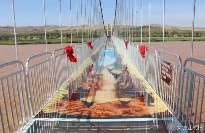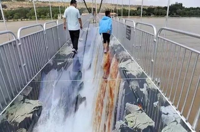 Tuy nhiên, mới đây tại quốc gia đông dân nhất thế giới đã xuất hiện một cây cầu kính kết hợp công nghệ 3D khiến cho nhiều du khách phải khóc thét vì độ kinh hoàng của nó còn được nhân lên gấp bội so với cây cầu ở Trương Gia Giới hay hành lang lơ lửng ở Trùng Khánh.