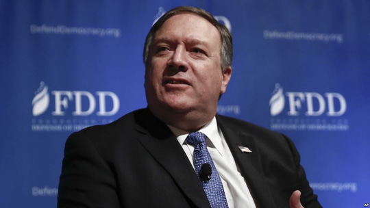 Ông Pompeo phát biểu tại một diễn đàn an ninh do Tổ chức Phòng thủ dân chủ (FDD) tổ chức hôm 19-10. Ảnh: AP