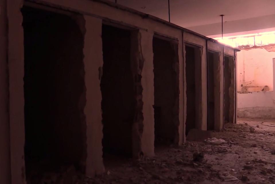 Trong video của Sky News, phóng viên Stuart Ramsay đi qua các khu tàn tích của nhà tù. Trong đó, Ramsay chỉ vào những chiếc giường bằng kim loại, nơi tù nhân bị trói và cho điện giật.