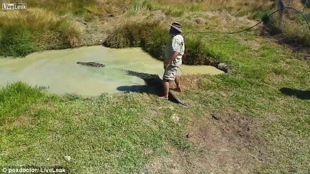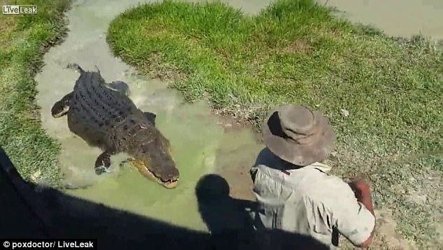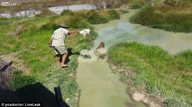 Đoạn video bắt đầu với khung cảnh người kiểm lâm cầm một con gà, đập nhẹ vào vũng nước nông trông hết sức yên bình. Bất ngờ, một con cá sấu lao lên theo tiếng gọi của thức ăn, bò dần và lộ diện. Lúc này, người xem mới thực sự ngỡ ngàng khi phát hiện ra một sinh vật khổng lồ ẩn mình dưới vùng nước nông êm ru.