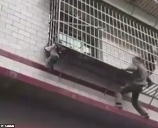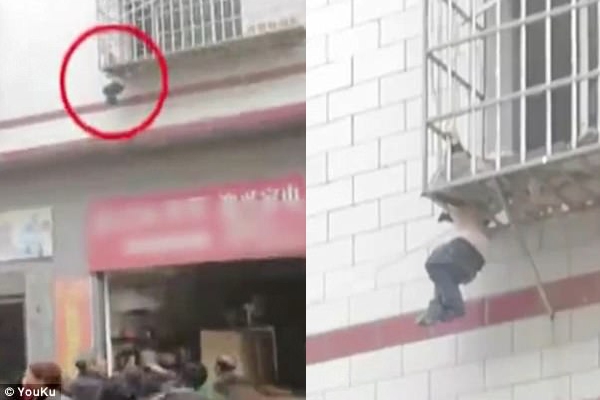 Ngày 21/10, người dân sống tại khu nhà tập thể ở Zixing, Hồ Nam (Trung Quốc) đã chứng kiến cảnh cậu bé 3 tuổi bị treo lơ lửng trên ban công. Điều khiến cho những người có mặt tại hiện trường hoảng sợ là cả người cậu bé thả giữa không trung còn đầu bị kẹp bởi khung sắt. Ai cũng lo lắng và bất lực trước hình ảnh nguy hiểm này.