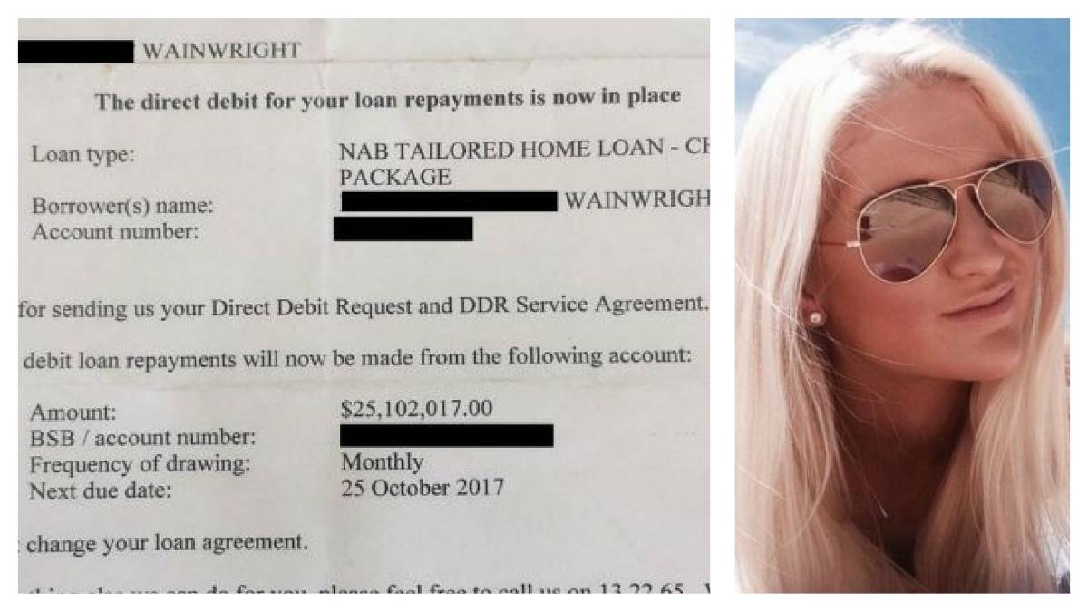 Cô Clare Wainwright, làm nghề luật sư, đã phát hiện thấy số tiền vô cùng lớn trên trong tài khoản Ngân hàng Quốc gia Úc (NAB) vào ngày 25/10, vài tuần sau khi cô nhận được thư xác nhận một khoản nợ trực tiếp cho việc hoàn trả khoản vay đã được thiết lập.