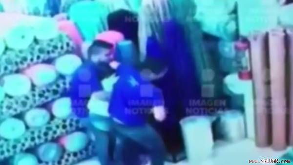 Máy quay an ninh CCTV cho thấy hình ảnh rùng rợn khi hai tên sát nhân vật lộn với nạn nhân bên trong cửa hàng bán vải của họ ở làng San Cosme Mazatecochco, bang Tlaxcala, miền trung Mexico.