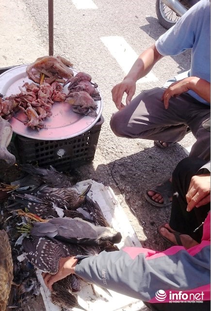 Những con chim đã chết, bẫy được ban đêm đang được bán trên QL1A (cánh đồng Thanh Lam).