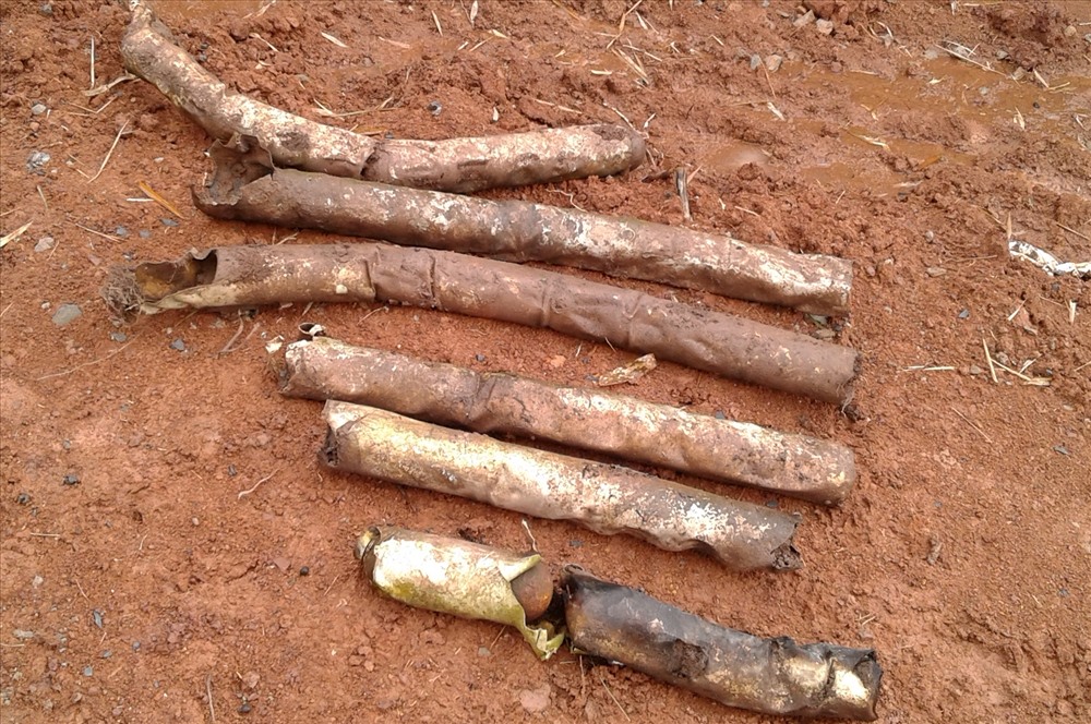 Bom bị Blu 24 nằm trong các ống dài do máy bay Mỹ thả xuống trong những năm chiến tranh. Ảnh: HT.