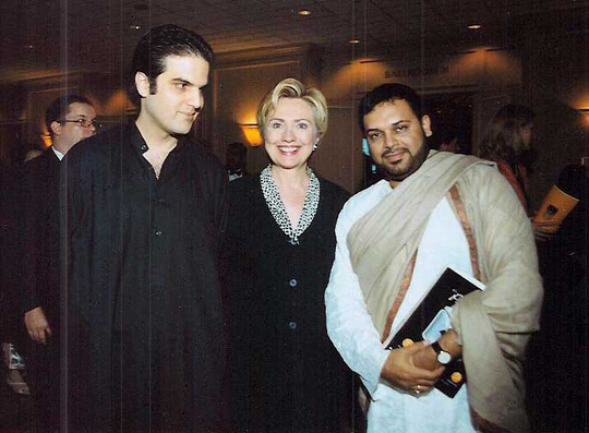 Nhạc sĩ Shubhashish Mukherjee (phải) và bà Clinton (giữa) tại Nhà Trắng năm 2004. Ảnh: SWARMANDAL
