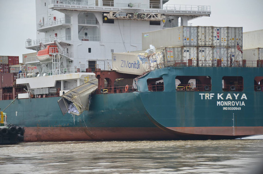 Vụ va chạm khiến chiếc tàu neo đậu biến dạng phần đuôi và một số thùng container phía trên. Trong đó, một thùng hàng loại 40 feet chứa cá basa đông lạnh bị xé toạc, rớt xuống sông rồi trôi về hướng bến phà Cát Lái (phía bờ Nhơn Trạch, tỉnh Đồng Nai).