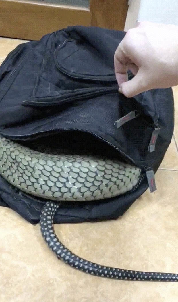 Video rắn cực độc chui vào balo.