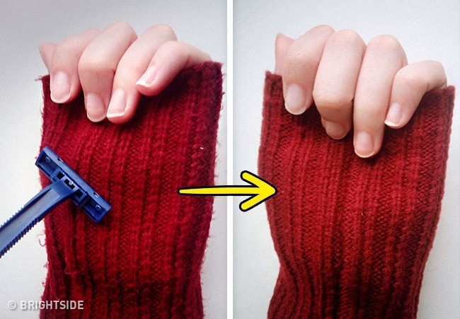 Để áo len của bạn trông mới hơn, hãy dùng dao cạo râu, nhẹ nhàng lướt trên áo để loại bỏ những phần lông xù nhỏ. Hãy thật cẩn thận để tránh làm hỏng áo nhé.
