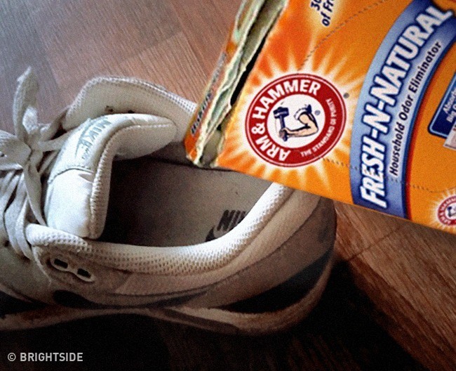 4. Đổ baking soda vào giày để tránh bị mùi.