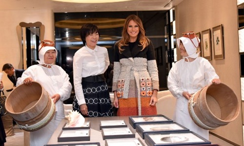Đệ nhất phu nhân Mỹ được giới thiệu về cách thức người Nhật Bản khai thác ngọc trai. Trên mạng xã hội Twitter, sau cuộc gặp, bà Melania viết: "Một chuyến tham quan tuyệt vời cùng bà Abe vào hôm nay! Thực sự hứng thú với cuộc trò chuyện bên bàn trà cũng như bài giới thiệu văn hóa về lịch sử ngọc trai".