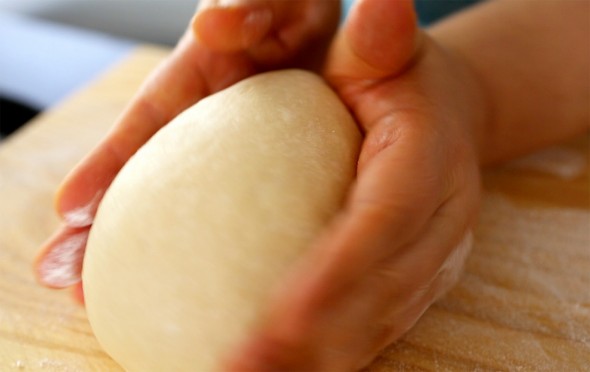 7. Mở nắp ra. Nhồi bột thật mịn màng cho tới khi cục bột trở thành một quả banh tṛn và nhẵn thín.