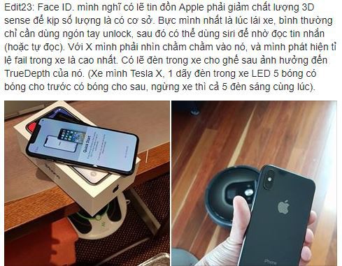Đây là những lời viết ra từ trải nghiệm của một chủ nhân sớm cầm trên tay iPhone X về Việt Nam trong một group diễn đàn công nghệ nổi tiếng của nước ta, v́ thế không phải là không có cơ sở và đáng bị coi nhẹ.