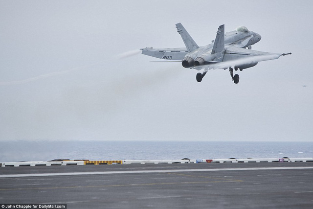 Dàn tiêm kích khủng trên boong tàu sân bay USS Carl Vinson. Ảnh: Dailymail