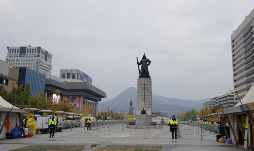 Hàng rào sắt được thiết lập xung quanh Quảng trường Gwanghwamun Plaza qua Đại sứ quán Hoa Kỳ, và một số lượng lớn nhân viên cảnh sát đã được triển khai xung quanh.