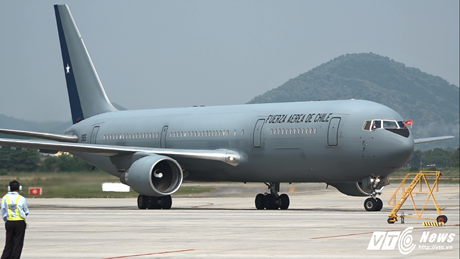 Chuyên cơ chở nữ Tổng thống Cộng hòa Chile xuống sân bay Nội Bài.