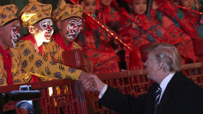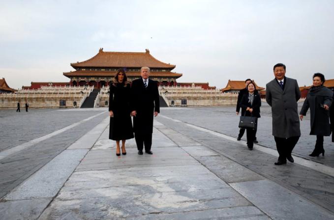 Chuyến thăm chính thức Trung Quốc của Tổng thống Trump kéo dài ba ngày, bắt đầu với buổi tham quan Tử Cấm Thành, Bắc Kinh. Ảnh: AFP.
